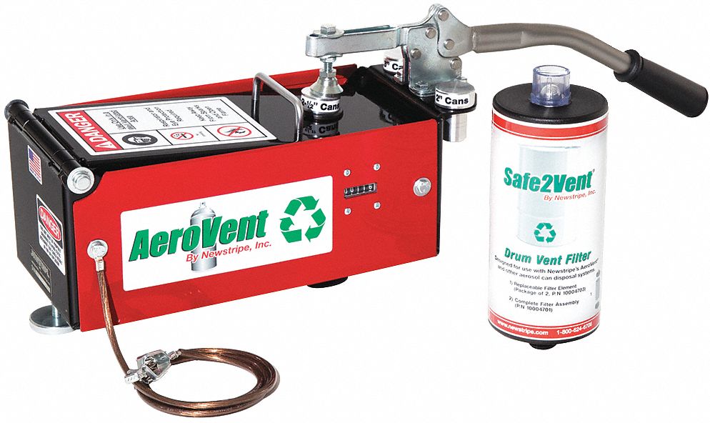 The aerosol can recycling system by Aerosolv is easy to use. Aerosolv Aerosol Recycling System. Eliminates the risks associated with illegal aerosol disposal and the expense of hazardous waste handling. Then thread the filter with replaceable. With AEROSOLV the punctured cans can be fully recyclable. Includes a puncturing unit coalescingcarbon filter and antistatic wire and. Health and Safety Code section 2520015 authorizes DTSC to certify the performance of hazardous waste environmental technologies. The Aerosolv Aerosol Can Disposal Recycling System is designed to help industries meet regulatory compliance by disposing of aerosol cans quickly and cost-effectively. They safely puncture cans to relieve pressure and drain residual liquid into the drum.