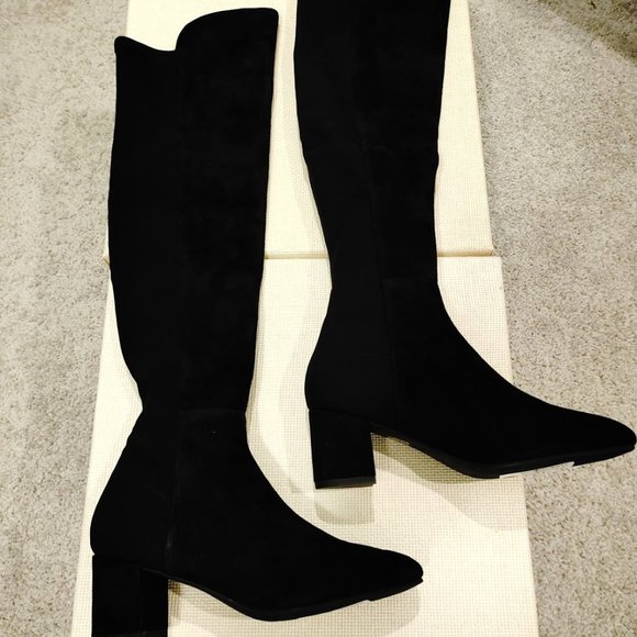 Our 5050 boots feature a leather or suede front with a contrasting micro stretch back while our over-the-knee LOWLAND MIDLAND TIELAND and HIGHLAND boots are crafted from stretch-infused leather or suede and finished with a tie back detail a Stuart Weitzman signature detail that offers. Keelan Suede And Stretch-ponte Over-the-knee Boots - Black. Ad Discover Iconic Pumps Boots Sneakers More from Designers You Love.