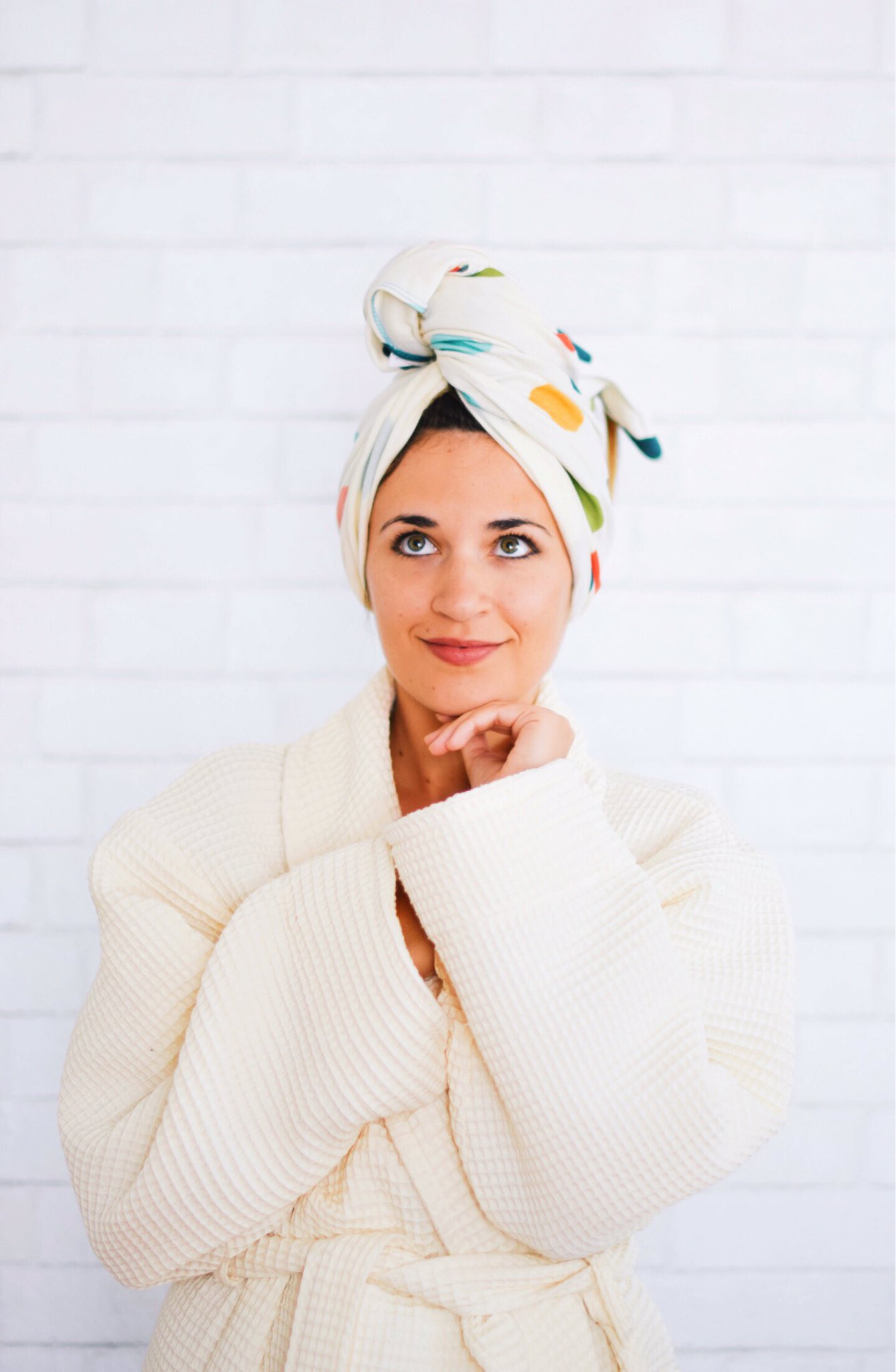 View on Sunrise Bliss. Towel dry hair gently and improve hair health with Sunrise Bliss organic cotton t-shirt hair towels the perfect partner for your beauty routine.