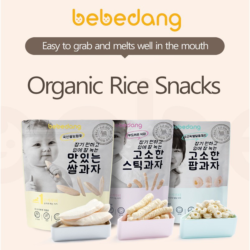 Korean Food Baby Snack. Home Korean - Snacks. BEBECOOK Double Colour Rice Snack 30g 5 months RM1790. 1502C17 As it is well-known that eating habits developed in the early years can have a lifelong influence almost every mom with little kids is seriously concerned about making healthy diet choices for their child. I remember eating my brothers banana flavored rice puffs and wondering why th. That has been loved for a long time in Korea. This product is made by adding different ingredients on both sides. If Im being honest I think my favorite part about growing up with a younger sibling was the snacks that my mom would bring with her. Save 15 ALVINS Korean Baby Rice Snack for 6 Months Brocolli Sweet Potato Sweet Pumpkin3packs x 30g RM 5000 Save 32 ALVINS Korean Orgainc Rice Snack PumpkinRiceCarrot 3packs x 30g.